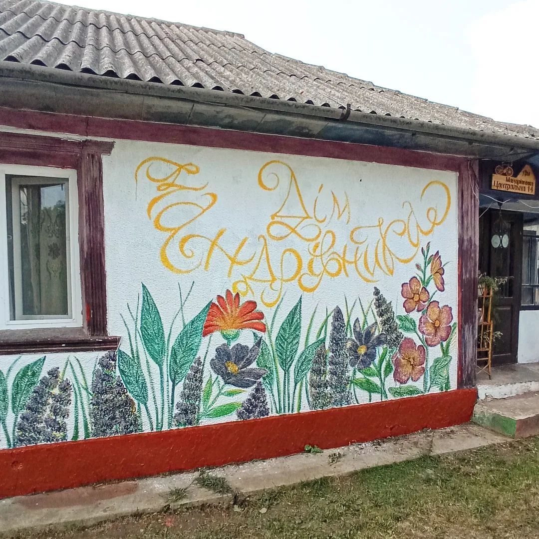 Мурал на мотиви локального художника О.Грена, який жив та малював свої роботи біля Бакоти в Крушанівці в 1920-1930 рр.